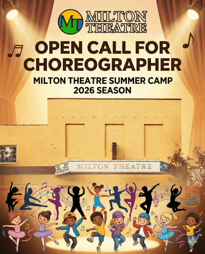 The Milton Theatre is seeking a qualified Choreographer for our 2026 Children’s Summer Theatre Camps. We are looking for a candidate who is local, reliable, and able to work well with children ages 6–16 in a fun, creative, and supportive environment.